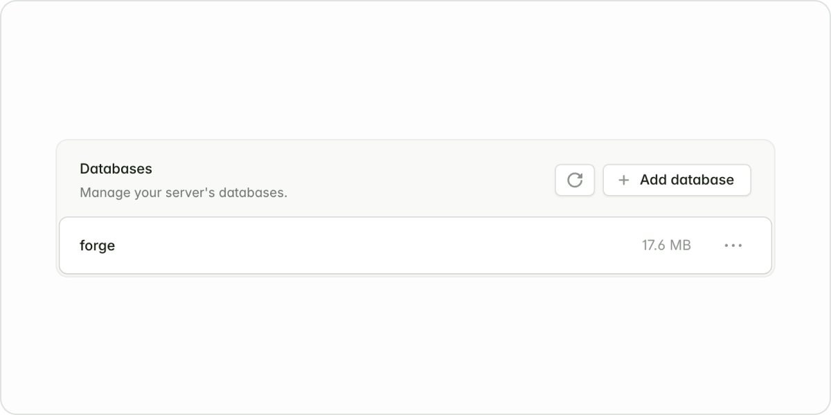Laravel Forge will now show you the estimated size of databases on your server. This is useful to identify large databases that may require optimization or archiving. Learn more about managing databases in Forge