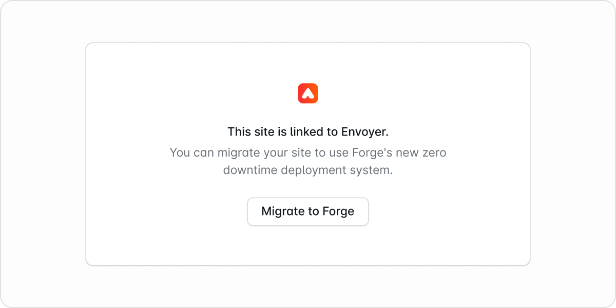 You can now migrate sites from Envoyer to Forge’s zero-downtime deployment system.From your site’s dashboard, click “Migrate to Forge” to start. Forge will check if your site uses multiple servers and guide you through the right steps.Zero-downtime deployments currently support one server per site. If you deploy to multiple servers, we recommend continuing to use Envoyer for now. Existing subscriptions remain fully supported. Read the docs