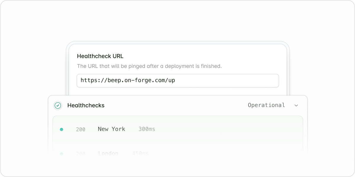 You can now catch connectivity and routing issues before your users notice them with Forge’s Health checks. This feature pings your application from three regions (London, New York, and Singapore), so you’ll know right away if it’s reachable worldwide.Heartbeats monitor your scheduled jobs by expecting a ping when they finish. If a backup or data processing task fails silently, Forge alerts you immediately, turning job monitoring from a reactive chore into a proactive safeguard. Enable Health checks and Heartbeats